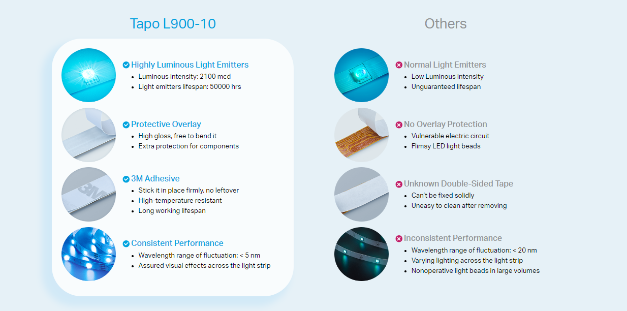 • Schedule & Timer – Create schedules in Tp-link Tapo L900-10 and count plans to turn on/off with the brightness/color you set.
