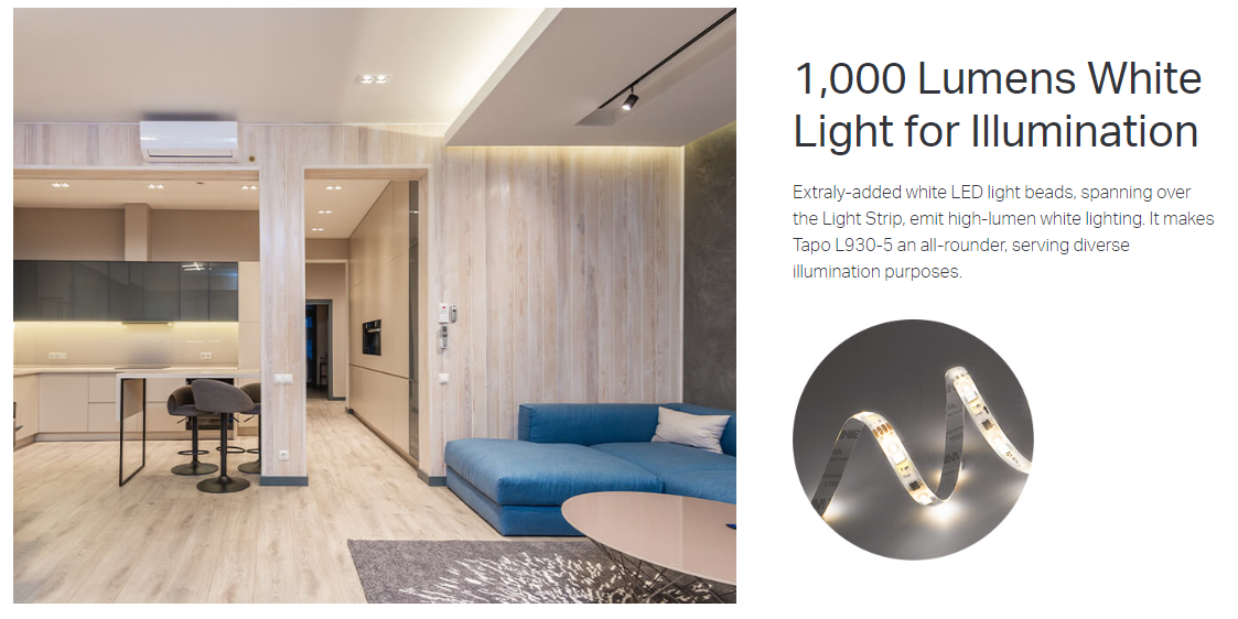 • Zonal Color Control – make the most of 50-section addressable color zones with TP-link Tapo L930-5, to suit every mood or scenario setting.