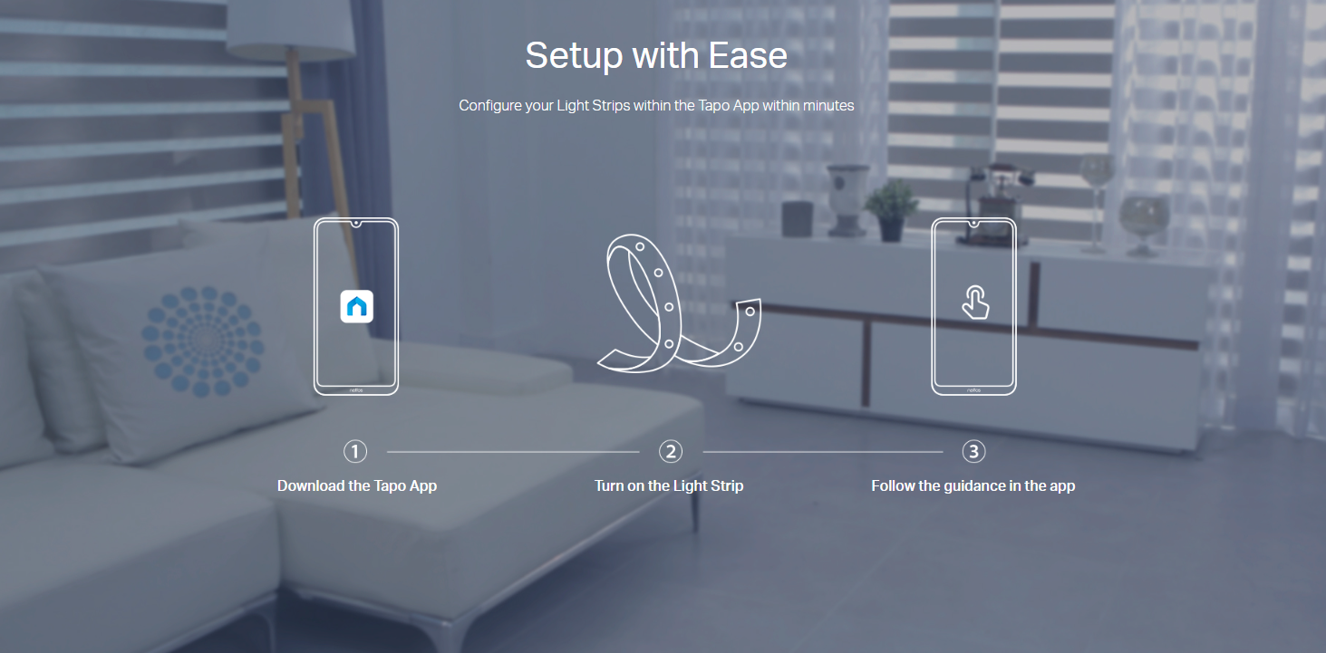 • Easy Setup – attach the Light Strip with 3M Adhesive on desired spots, connect it to Wi-Fi and configure it via App.
