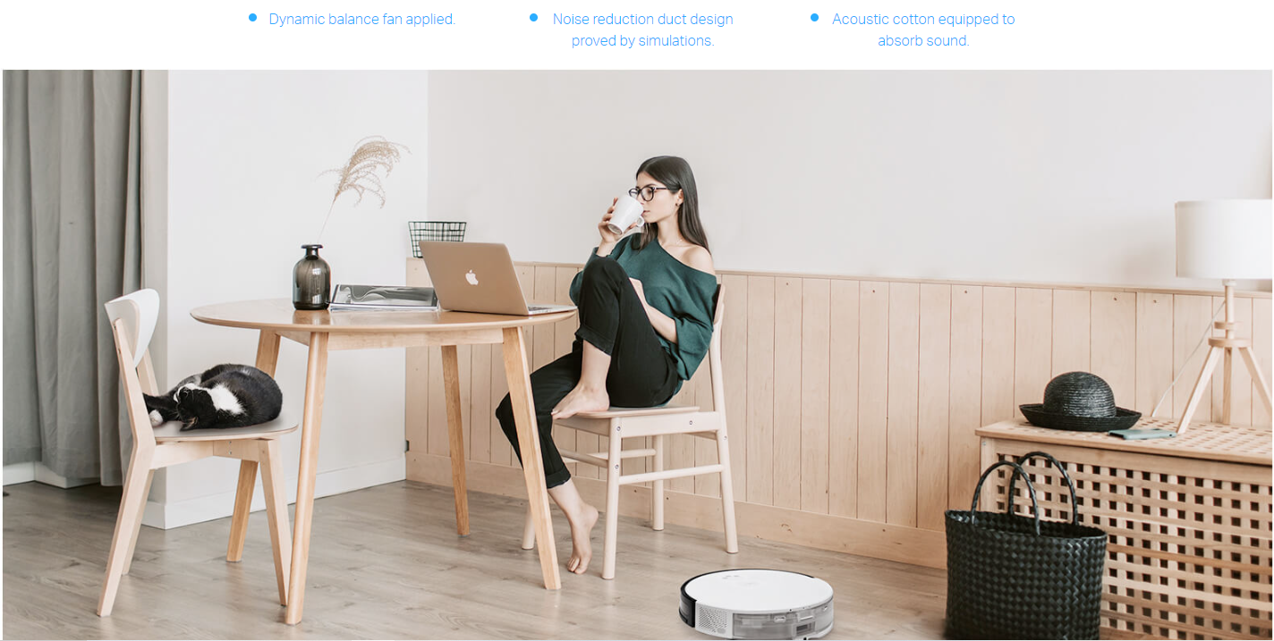 2. Based on internal testing carried out by the manufacturer, using quiet vacuuming mode with a full battery. Actual results may vary according to the working status and home environment.