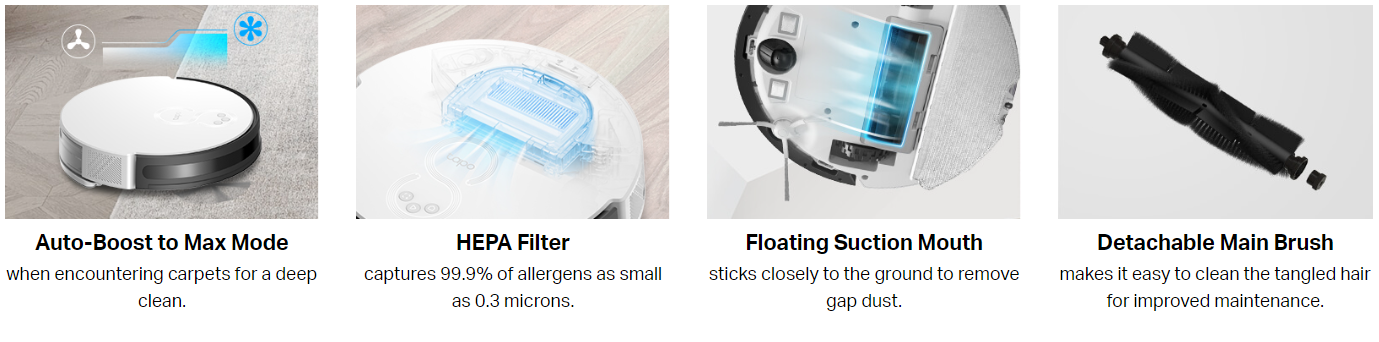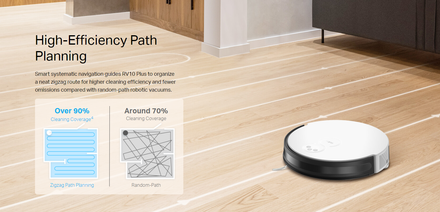 • High-Efficiency Zigzag Path Planning – TP-link Tapo RV10 Plus Organizes a neat zigzag route to reduce missed or repeated areas compared with random-path robot vacuums.