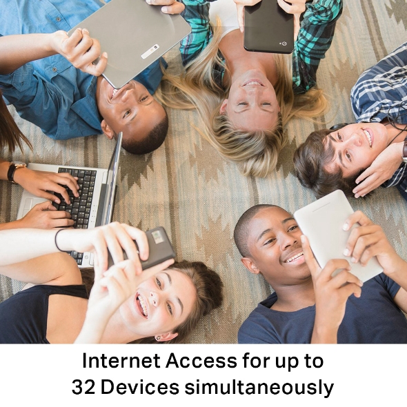 Easily share a 3G/4G connection with up to 32 wireless devices, such as phones, tablets, and laptops, at the same time. 4 LAN ports stand ready to provide internet for wired devices like desktop computers.