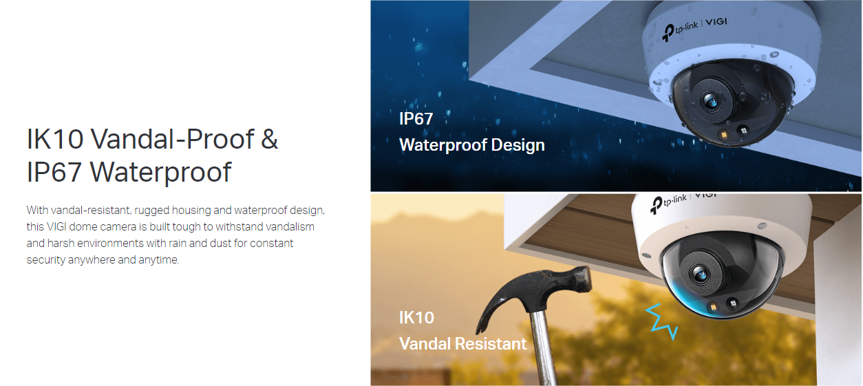 • IK10 Vandal-Proof & IP67 Waterproof: With vandal-resistant in Tp-link VIGI C240I 4mm, rugged housing and waterproof design, this VIGI dome camera is built tough to withstand vandalism and harsh environments with rain and dust for constant security anywhere and anytime.