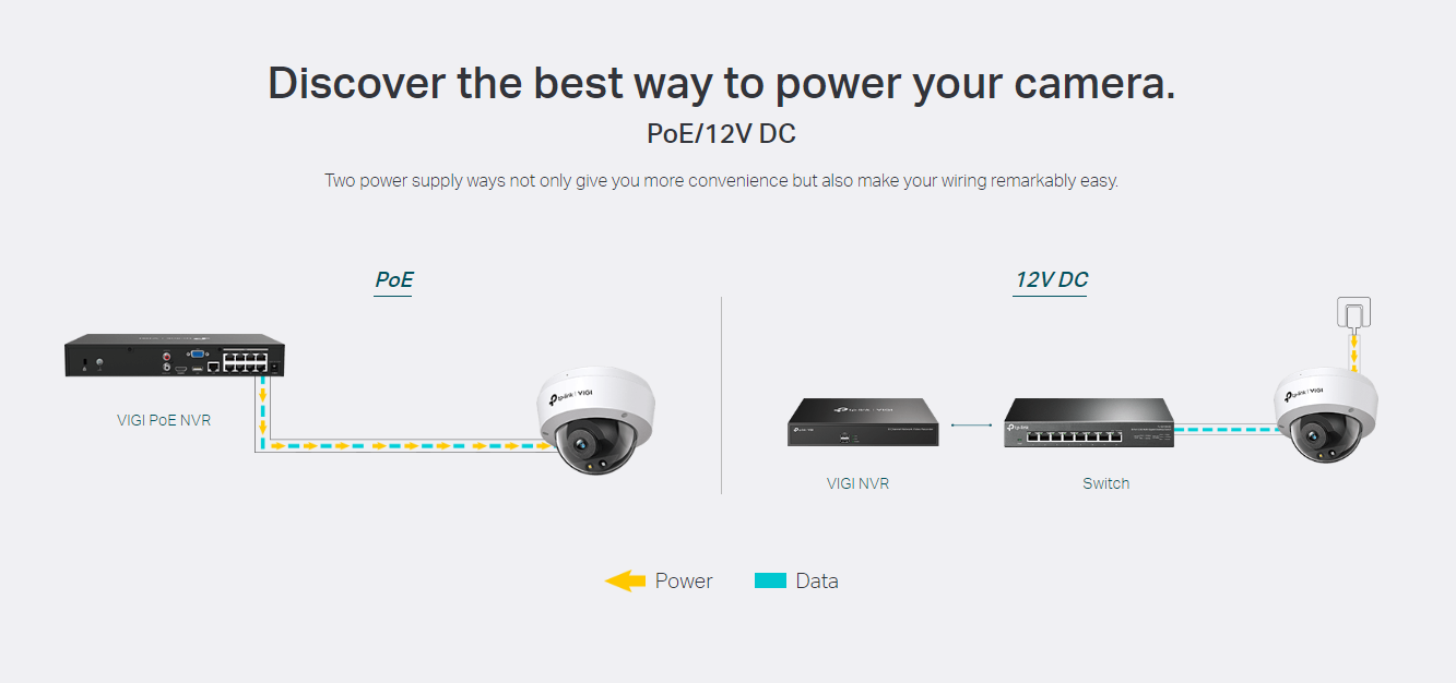 • PoE/12V DC: Two types of power supply not only give you more convenience but also make your wiring remarkably easy.
