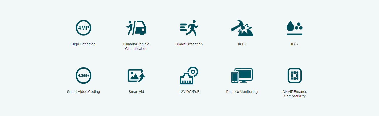 • Smart Video Enhancement: VIGI’s professional technologies process videos to greatly improve their quality that is vital to your monitoring, including Smart IR, WDR, 3D DNR, and Night Vision.
