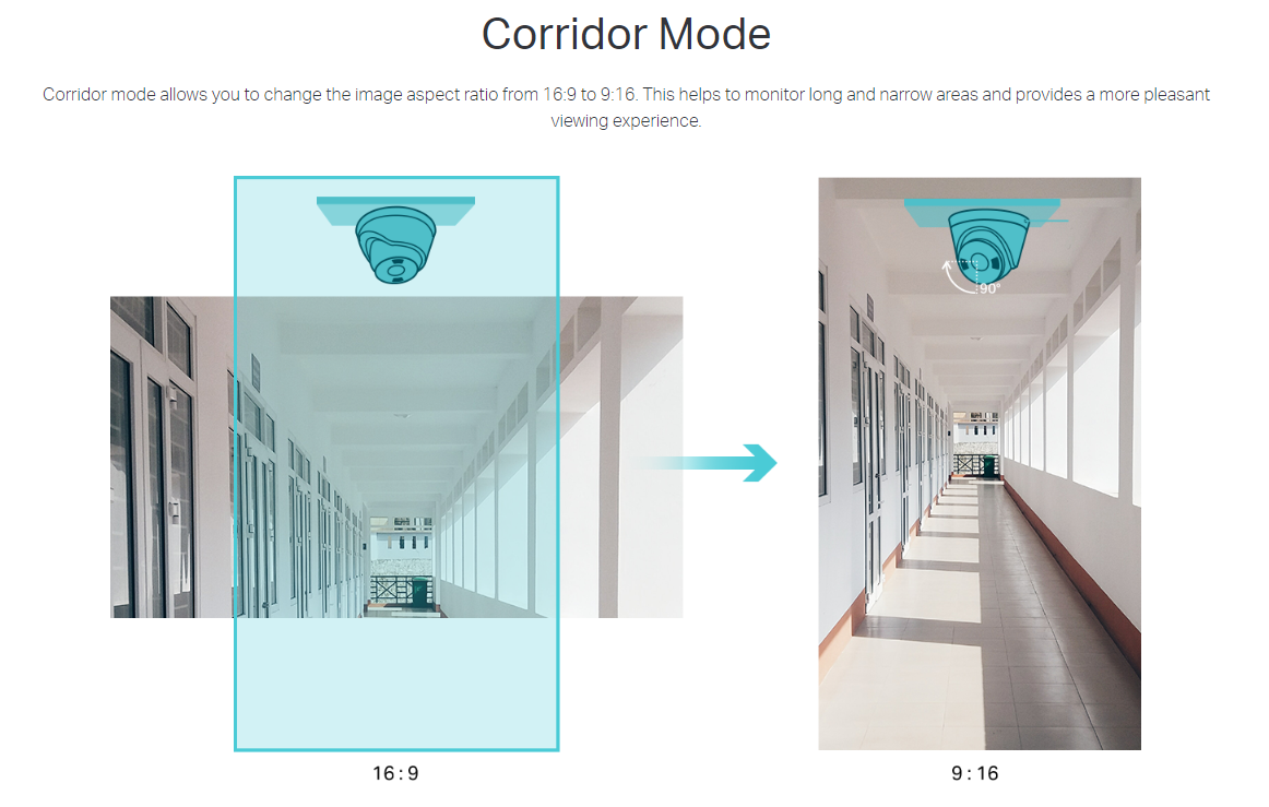 - Corridor Mode: Allows you to change the image aspect ratio from 16:9 to 9:16, and helps to monitor long and narrow areas.