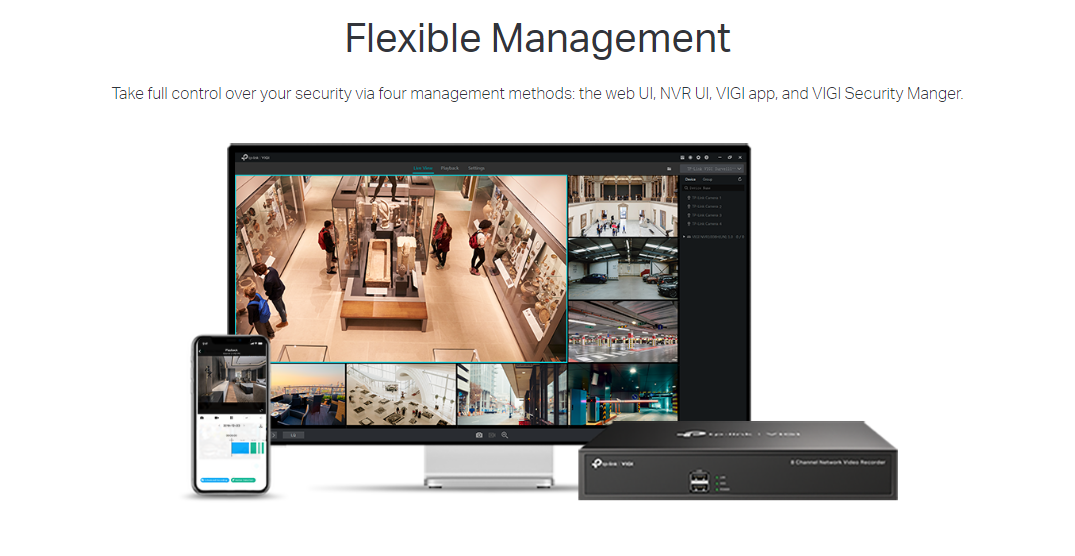 - Flexible Management: Take full control over your security via four management methods: the web UI, NVR UI, VIGI app, and VIGI Security Manger.Â