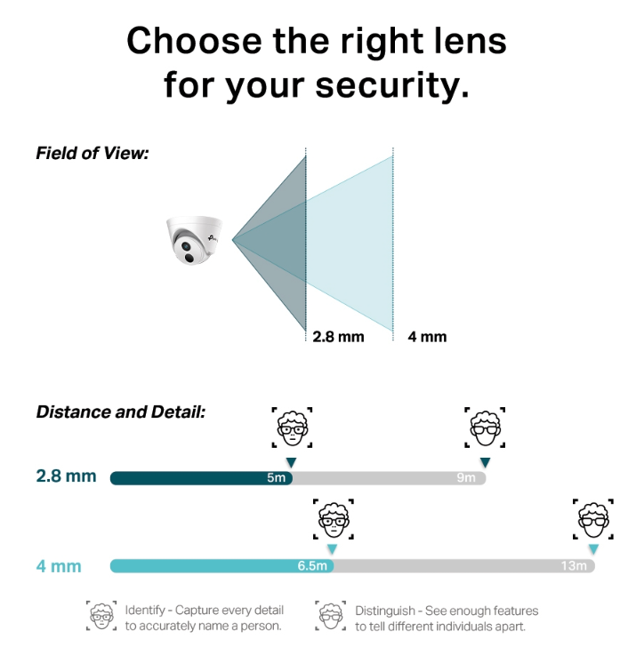 - 2.8/4 mm Lens:Â Whether you need a wide-angle lens to cover enclosed spaces or a higher millimeter lens for longer distances in open spaces, Tp-link VIGI C440I 4mm comes with two different lens types to better suit your security needs.