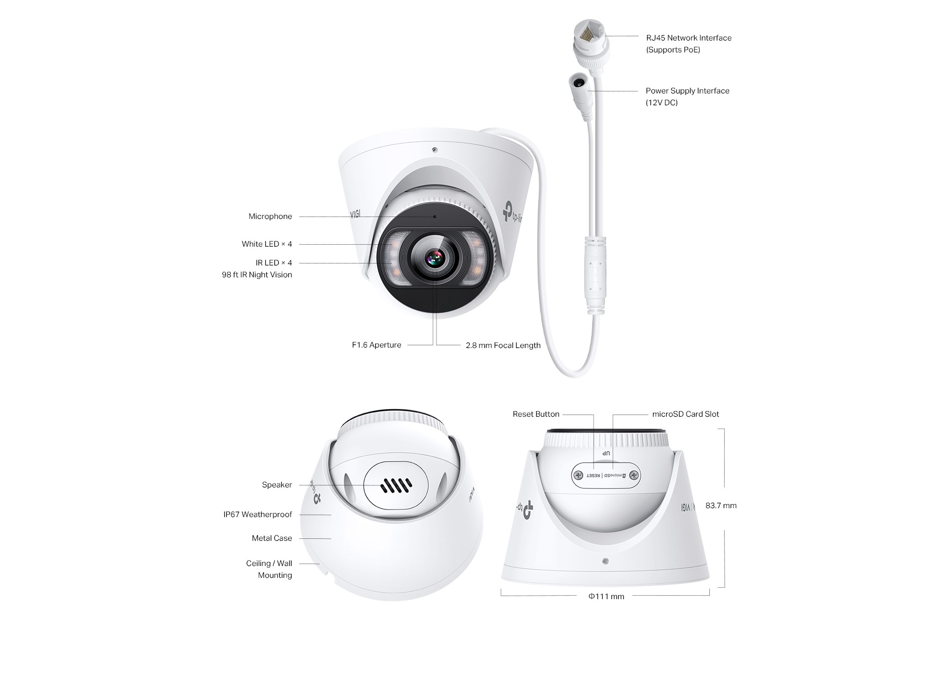 Enhanced with Smart Video Enhancement technology—including features like Smart IR, WDR, and 3D DNR—the camera ensures high-quality images by reducing noise and adjusting brightness in challenging lighting conditions. Active defense provides an additional layer of security, deterring intruders with light and sound when triggered. Two-way audio in Tp-link VIGI C445 2.8mm enables real-time communication through the camera, making it suitable for managing interactions at entry points or alerting visitors remotely.