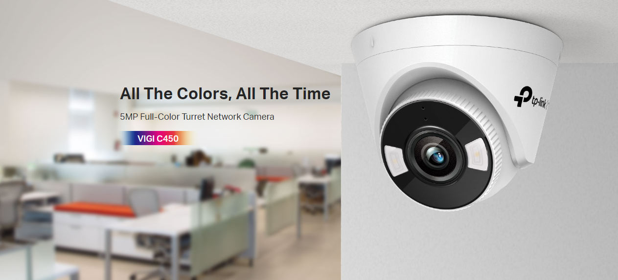Tp-link VIGI C450 Monitor 24-hour clear and colorful details even in pitch dark night. VIGI Full-Color camera provides maximum 5MP resolutions and ensures colorful monitoring with its large-aperture lens, high-sensitivity sensor, and attached supplemental lights.
