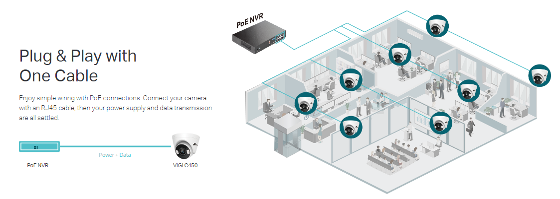 • PoE/12V DC: Tp-link VIGI C450 2.8mm Two types of power supply not only give you more convenience but also make your wiring remarkably easy.