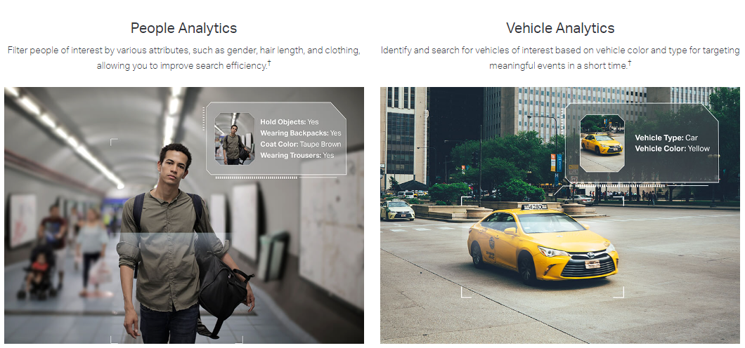 Smart EventHuman & Vehicle Classification, Area Intrusion Detection, Line-Crossing Detection, People Detection, Vehicle Detection, Region Entering Detection, Region Exiting Detection, Object Abandoned Detection, Object Removal Detection, Loitering Detection