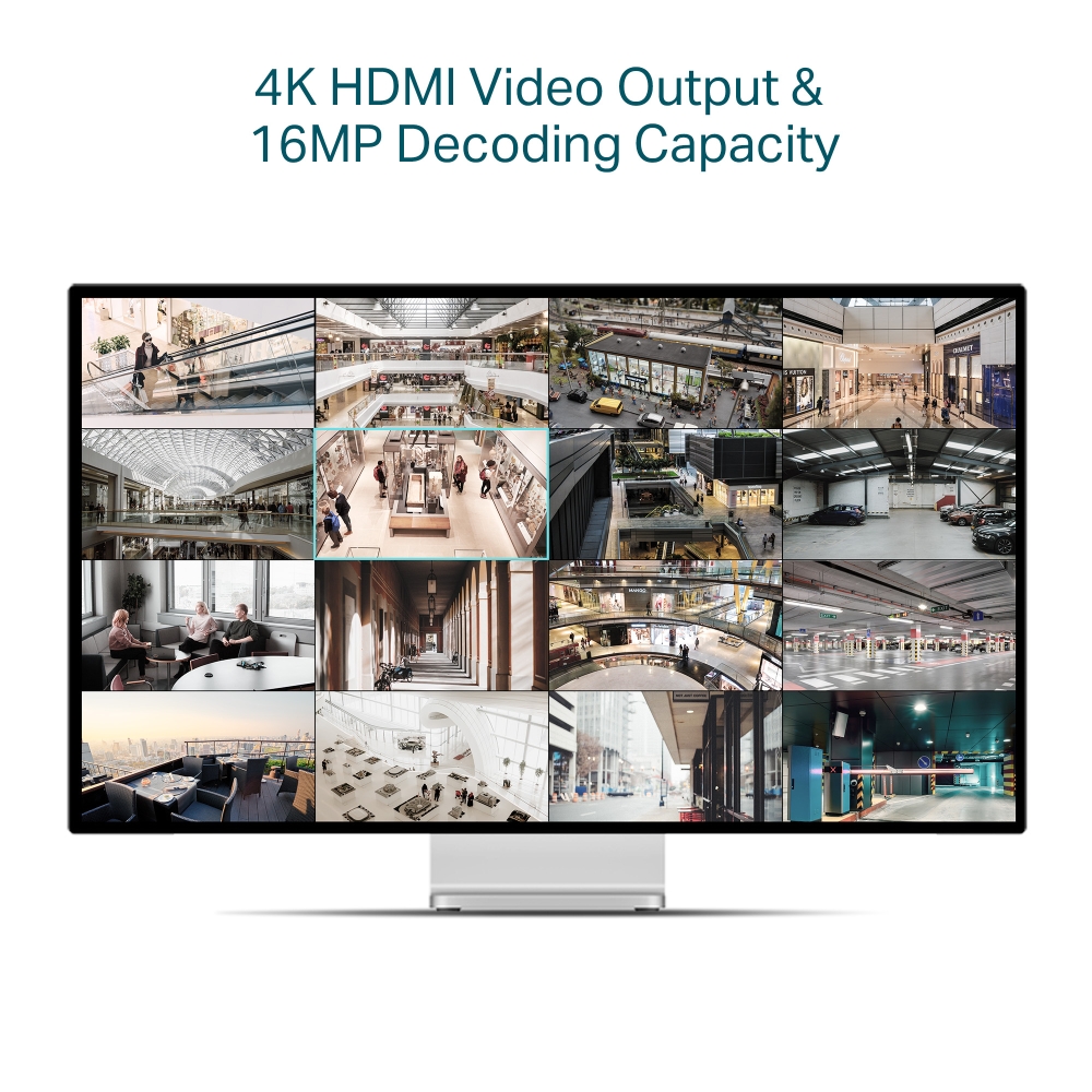 • 4K HDMI Video Output & 16MP Decoding Capacity:  Sharp image definition up to 8MP, and 8-ch@2MP† decoding capacity allows you to enjoy more-channels live view and playback at the same time.