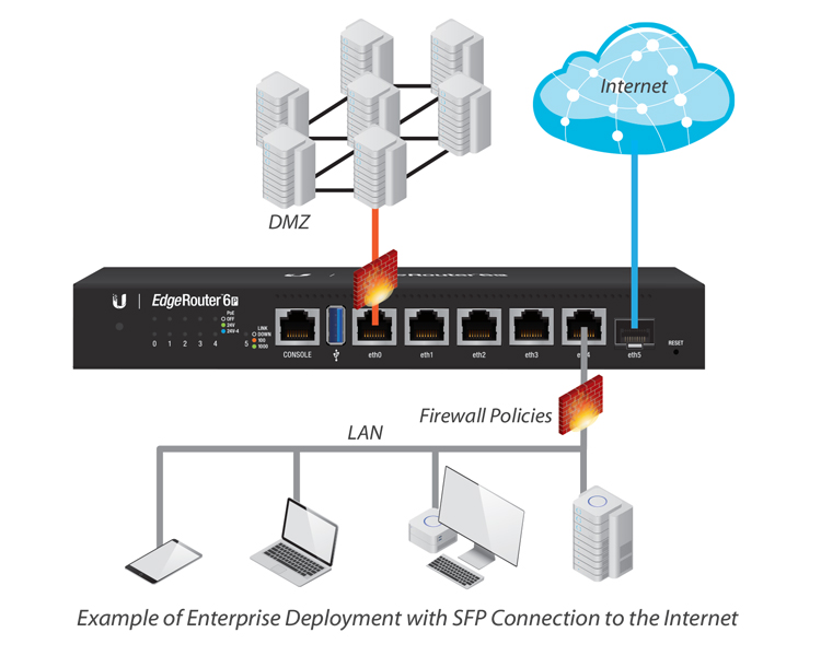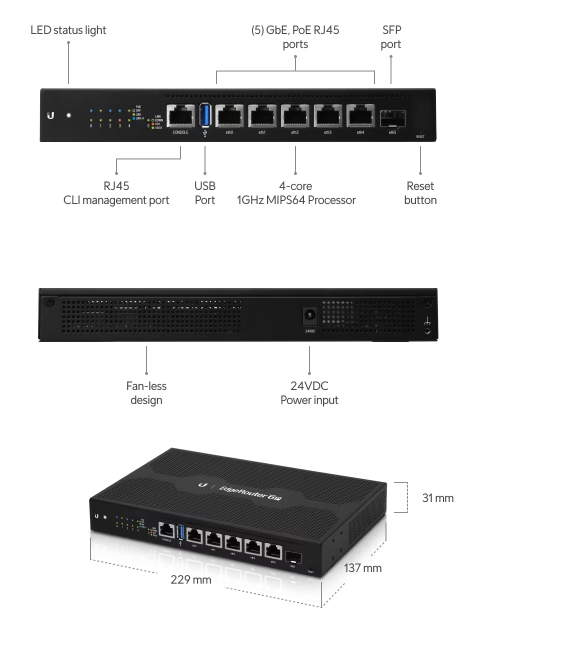 Ubiquiti ER-6P EdgeRouter 6 Port PoE is powered by EdgeOS, this router provides a suite of advanced features, including traffic management, firewall rules, VPN configuration, and deep packet inspection (DPI), enabling precise control over your network. Ubiquiti EdgeRouter 6 Port PoE is user-friendly interface and centralized management capabilities make it ideal for IT professionals and power users seeking a scalable and reliable networking solution.