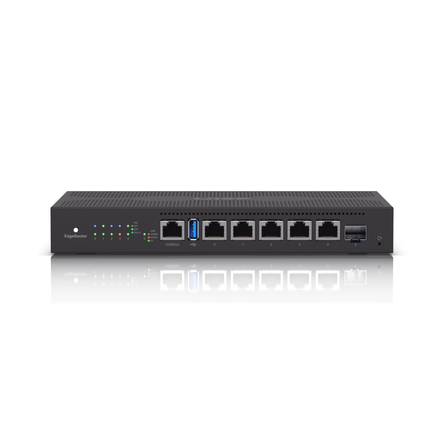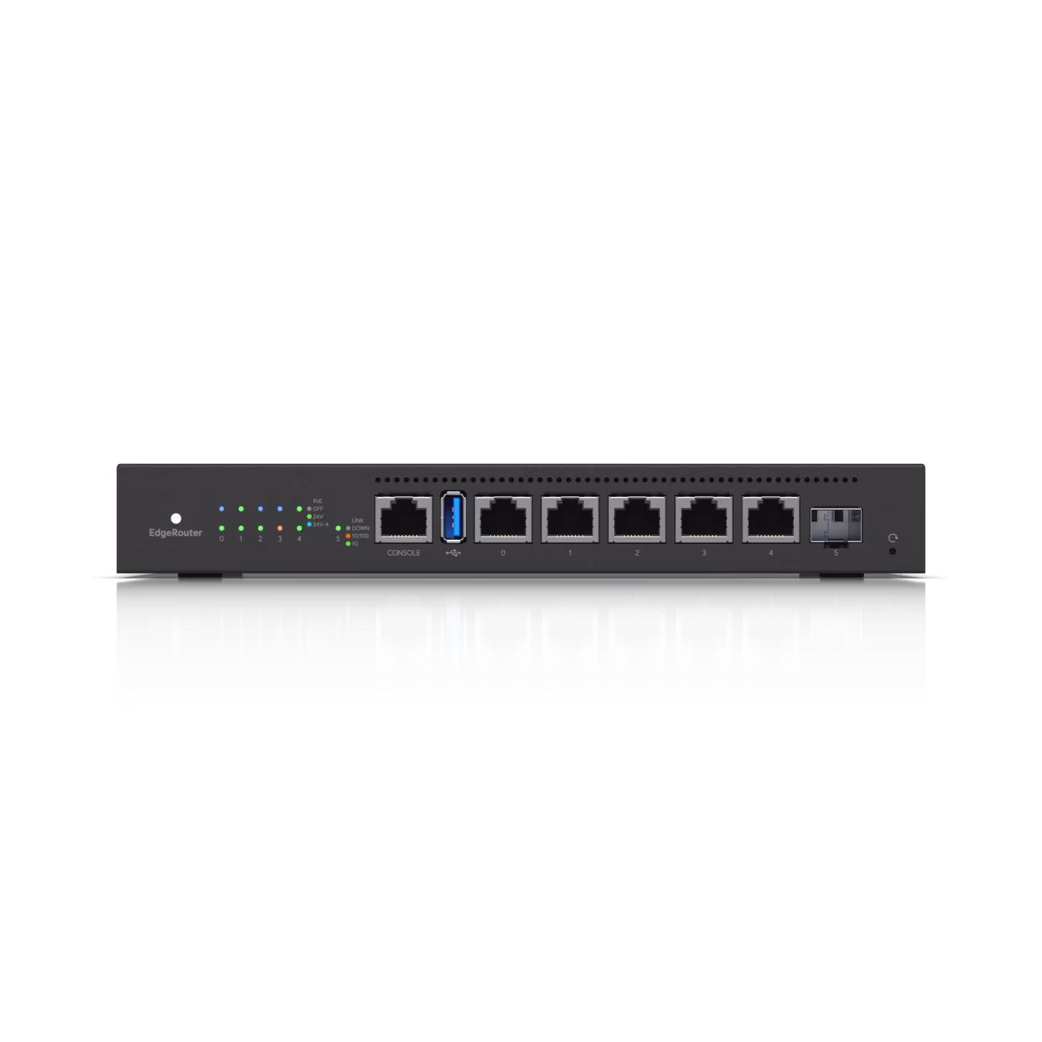 The Ubiquiti ER-6P EdgeRouter 6 Port PoE is a high-performance router designed for advanced networking applications in both residential and business environments. UUbiquiti ER-6P EdgeRouter 6 Port PoE is featuring six Gigabit Ethernet ports, including 5 configurable PoE ports, Ubiquiti EdgeRouter 6 Port PoE it also delivers exceptional routing and switching performance with robust power delivery for connected devices.