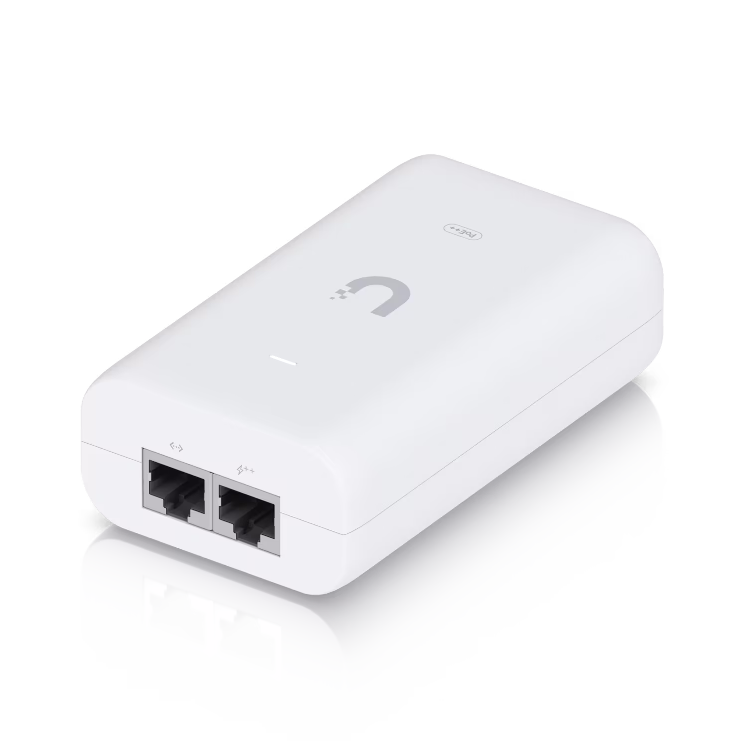 Ubiquiti U-PoE++ Adapter 60W (48V, 1.25A) – A high-power PoE injector with Gigabit LAN support, 60W PoE++ output, surge protection, and universal AC input (100-240V). Ideal for high-performance access points, cameras, and PoE devices.