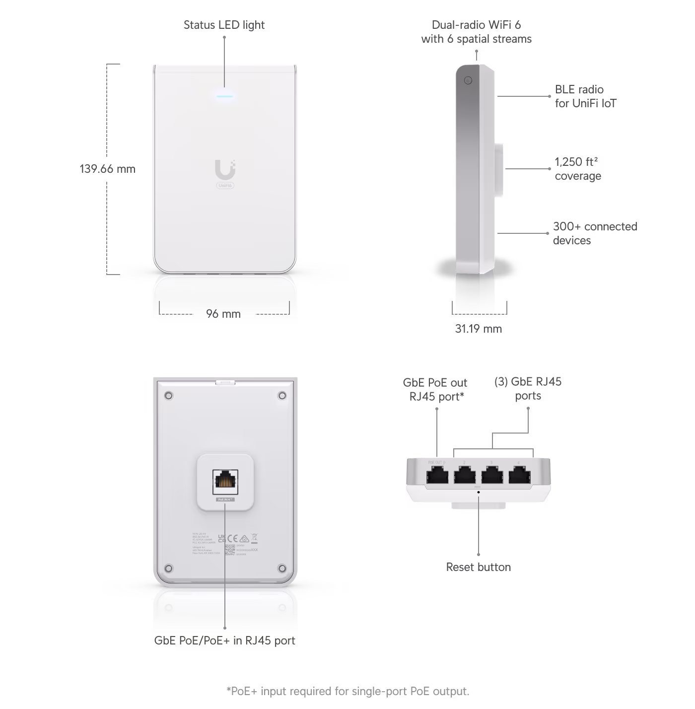 PoE interface(1) PoE in (PoE output not used) (1) PoE out (Requires a PoE+ switch)