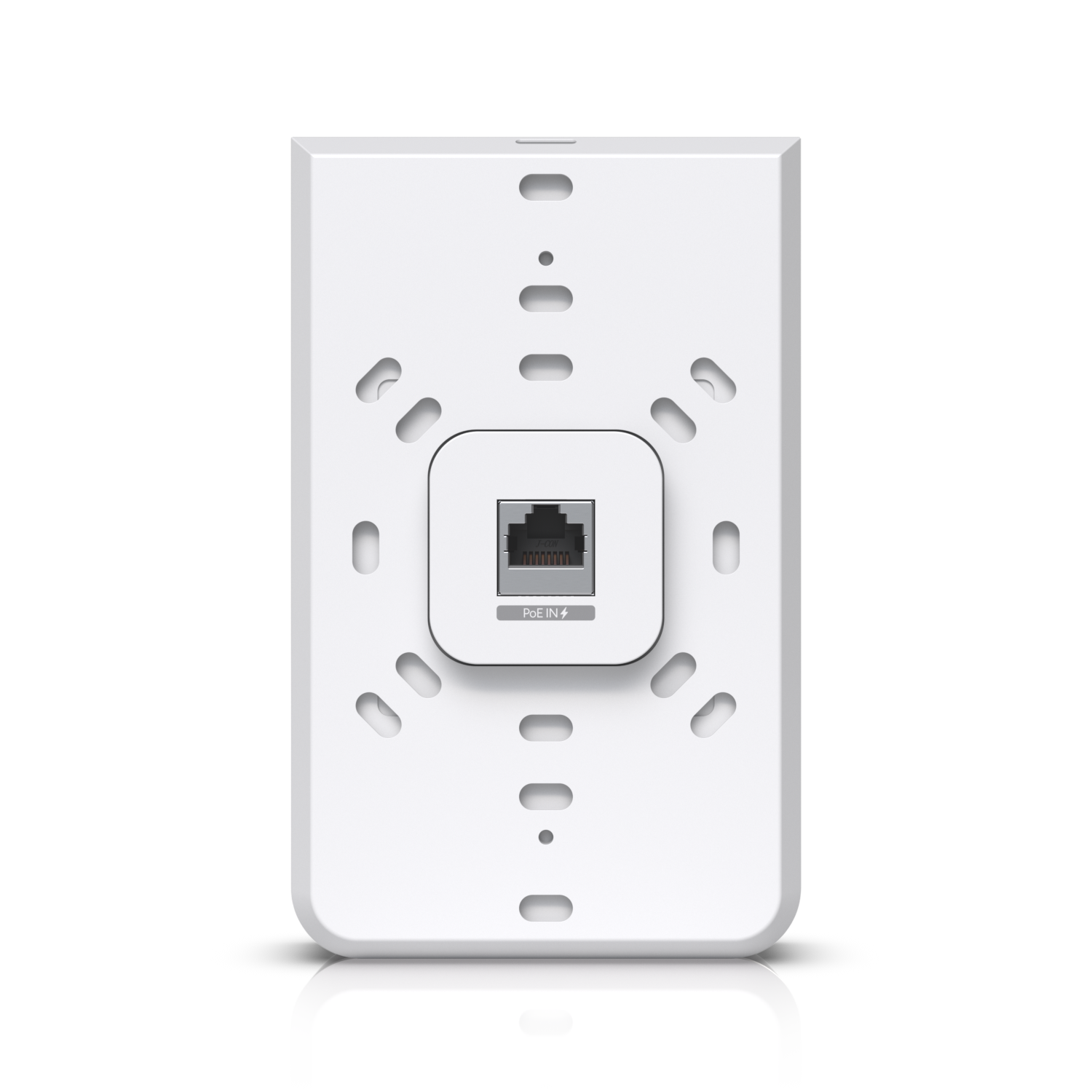The UniFi AC In-Wall AP transforms an Ethernet wall connection into a dual-band 802.11AC Wi-Fi Access Point. It features two Gigabit Ethernet ports, one of which delivers PoE to power and connects an 802.3af device to the network. The UniFi AC In-Wall AP provides simultaneous, dual-band, 2×2 MIMO technology and is available in single- and five-packs.