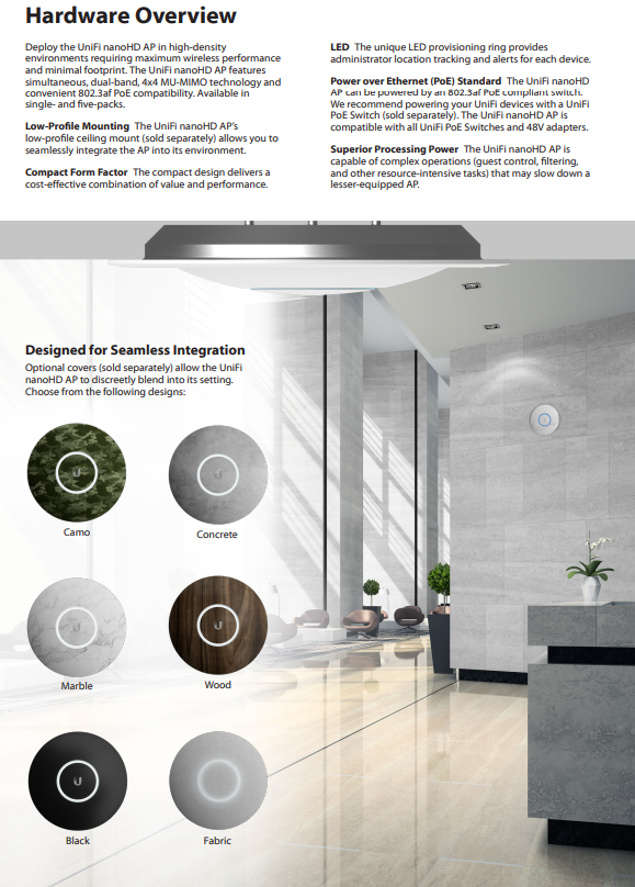 The UniFi nanoHD Access Point is an excellent choice for those seeking high-performance Wi-Fi in a compact form factor, delivering reliable connectivity and advanced management capabilities in any setting.