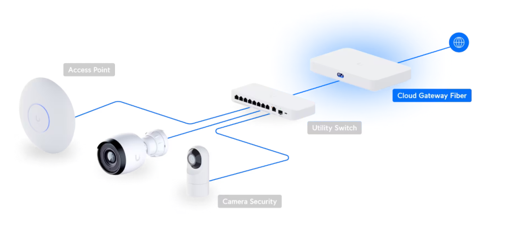 The Ubiquiti UCG-Fiber (30W) Cloud Gateway Fiber is an advanced network security gateway built to support high-speed fiber connections with robust security and networking features. Ubiquiti UCG-Fiber it integrates UniFi’s suite of applications, including Network, Protect, Access, Talk, and Connect, allowing centralized management of networking, security, and surveillance systems.