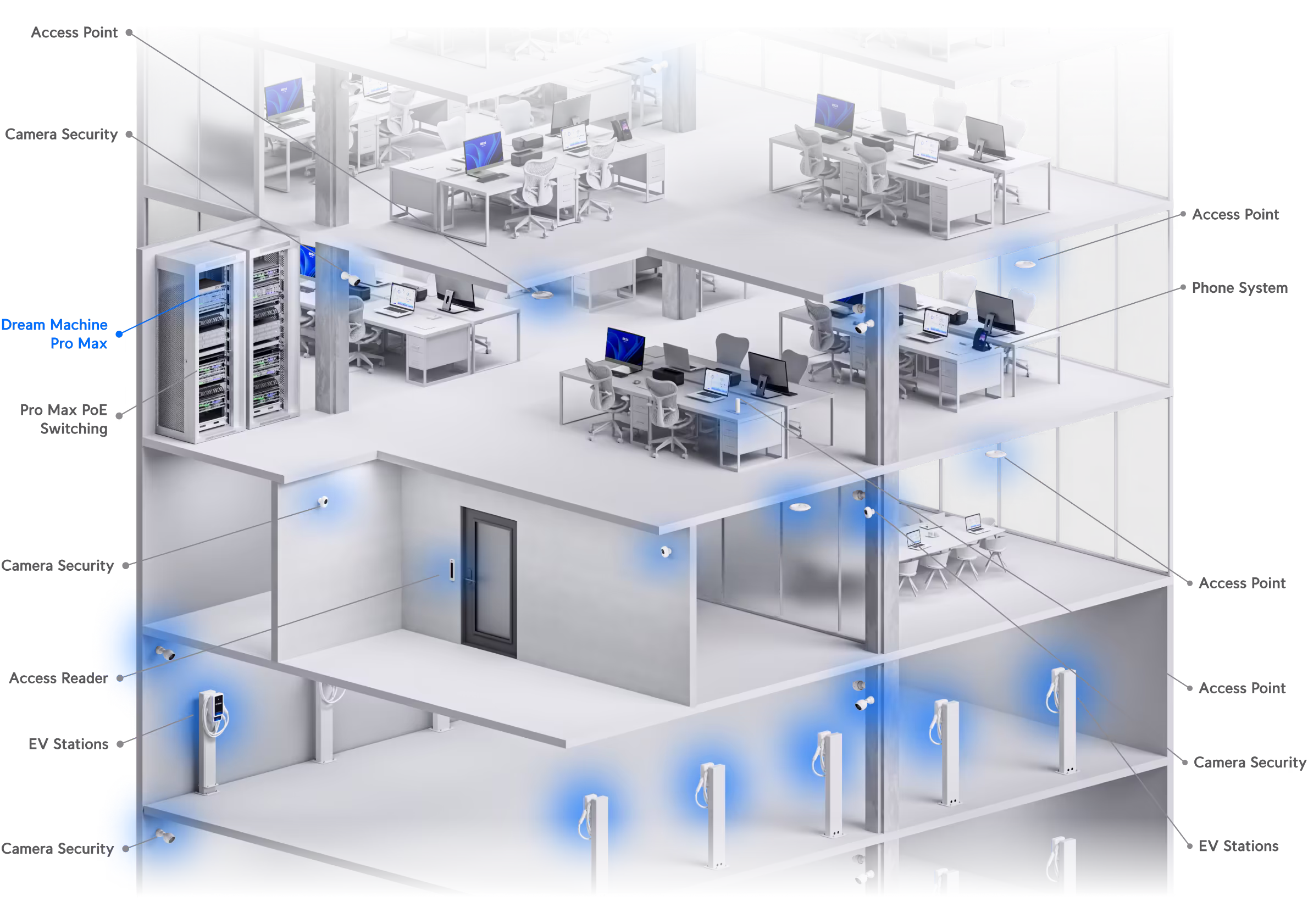 🔹 Scalable Networking – Expand seamlessly with UniFi Switches, Gateways & Cloud Controllers.