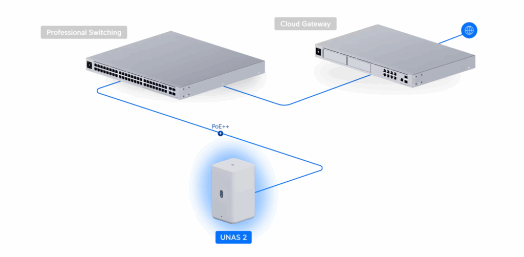 Ubiquiti UNAS-2 – UniFi Network Attached Storage with Dual 3.5″ Bays, 2.5GbE Connectivity, USB-C Expansion & PoE++ Power