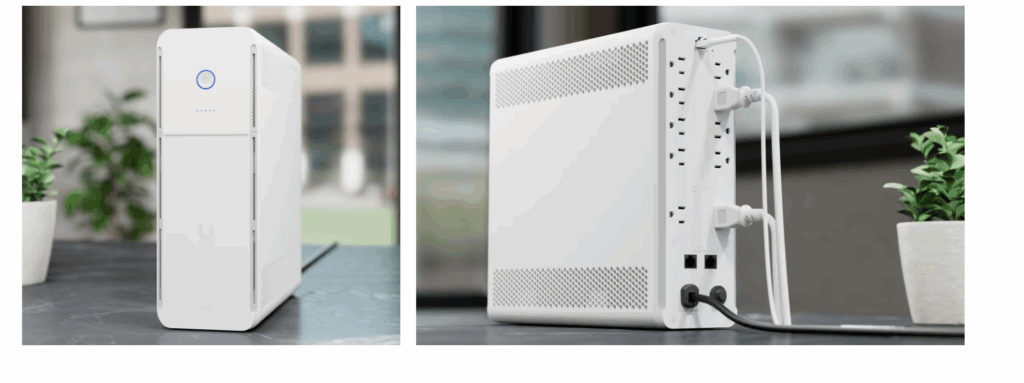 Ubiquiti UniFi UPS Tower is equipped with an Ethernet management interface, the UniFi UPS Tower integrates natively with Ubiquiti’s UniFi Network for monitoring, status reporting, and graceful shutdown automation of systems like UNVR and UNAS. It also supports Network UPS Tools (NUT) for third-party compatibility, providing flexibility across diverse environments.