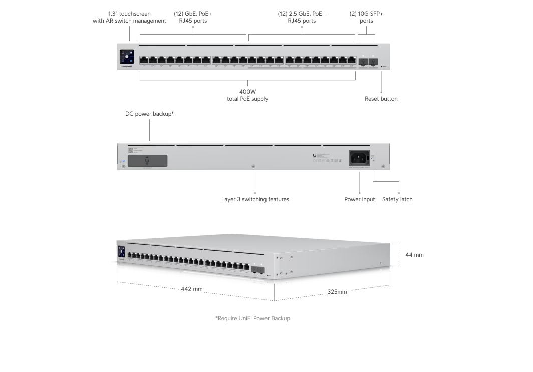 Ubiquiti USW-Enterprise-24-POE Layer 3 Switch With 2.5 GbE PoE+ Output