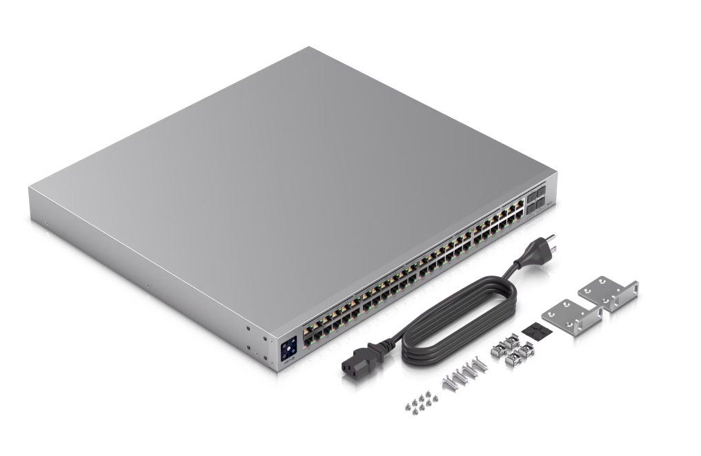 Ubiquiti USW-Pro-48-POE A 48-port, Layer 3 switch capable of high-power PoE++ output.
