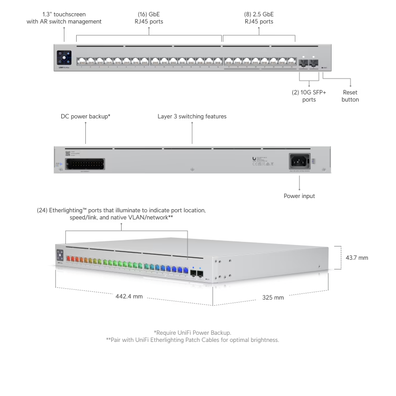 Ubiquiti USW-Pro-Max-24 is equipped with four 10G SFP+ uplink ports, the switch enables high-speed fiber connectivity for seamless data transfer and scalability across large network deployments. Ubiquiti USW-Pro-Max-24 has Layer 3 capabilities allow for advanced routing, VLAN segmentation, and traffic optimization, delivering a reliable and secure network solution.