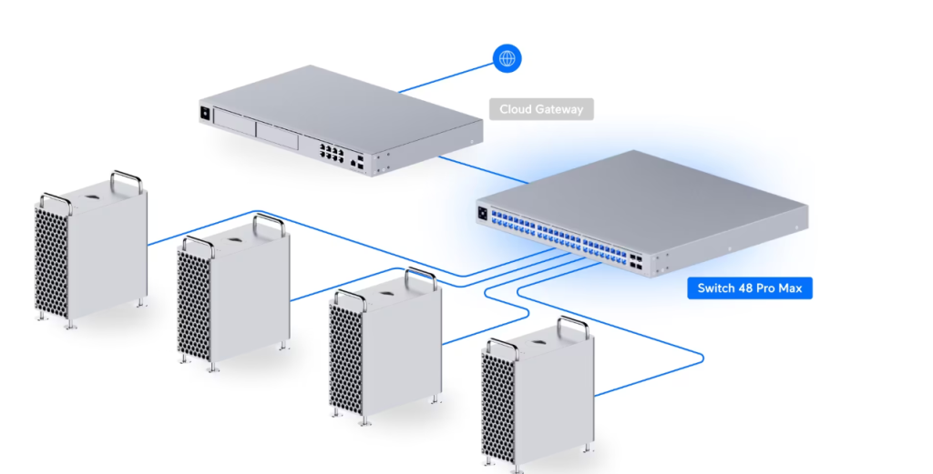 The Ubiquiti USW-Pro-Max-48 is a versatile, high-speed Layer 3 switch that delivers multi-gigabit connectivity, Pro AV optimizations, and enterprise-grade performance, making it perfect for modern, high-bandwidth network infrastructures.
