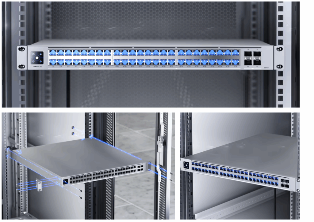 Ubiquiti USW-Pro-XG-48 is built with an internal 300W AC/DC power supply and redundant DC power input, the USW-Pro-XG-48 is designed for mission-critical operations. Its SGCC steel 1U rackmount chassis, LLDP-MED, and Voice VLAN make it ideal for unified communications and Pro AV applications. Fully manageable through the UniFi Network Controller (v9.0.114 or later), it seamlessly integrates into the UniFi ecosystem for centralized control and monitoring.