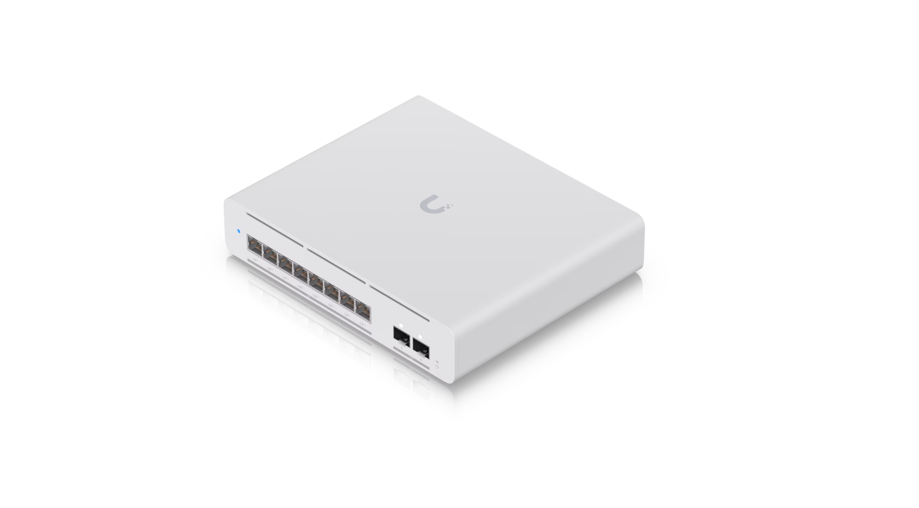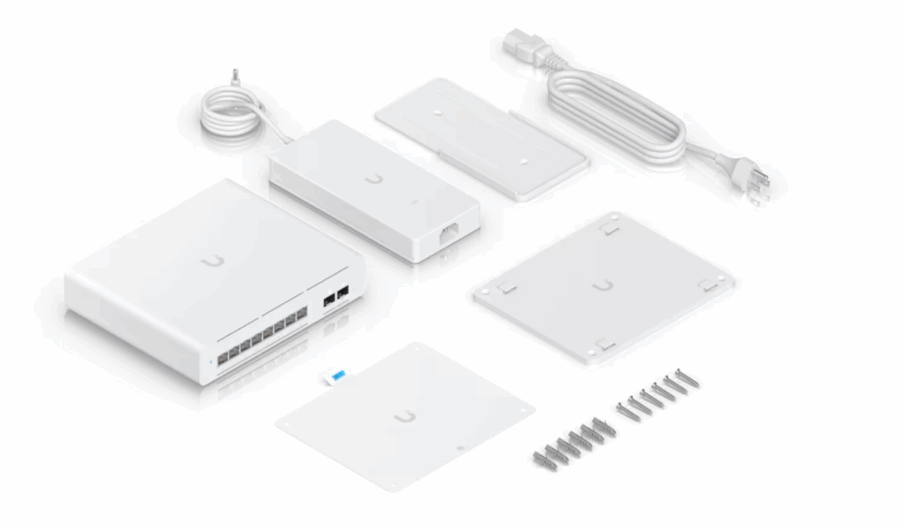 Ubiquiti USW-Pro-XG-8-PoE is designed for flexible deployment, the USW-Pro-XG-8-PoE supports desktop, wall, or rack mounting with durable SGCC steel housing and polycarbonate mount material. The switch also integrates Etherlighting™ LEDs for quick port diagnostics and full UniFi Network (v9.0.114+) management support for centralized control.