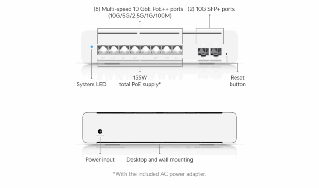 • 8 × 10G RJ45 PoE++ ports (up to 60W per port)