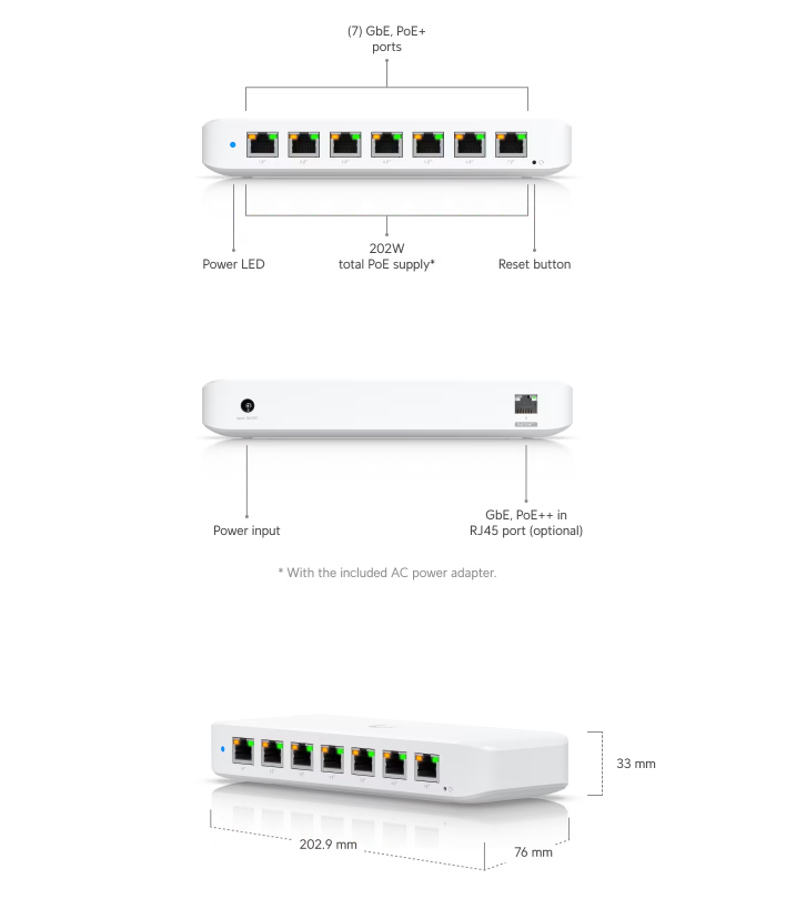 Ubiquiti USW Ultra 210W, 7 POE+ Ports with 202W Budget