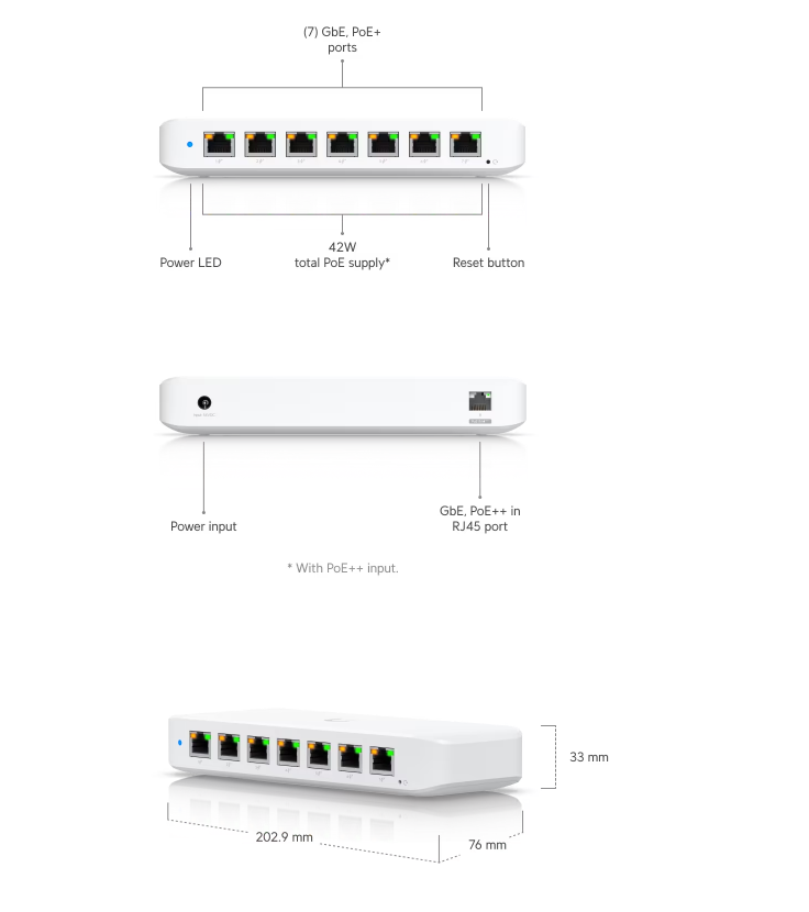 • (7) GbE PoE+ output ports