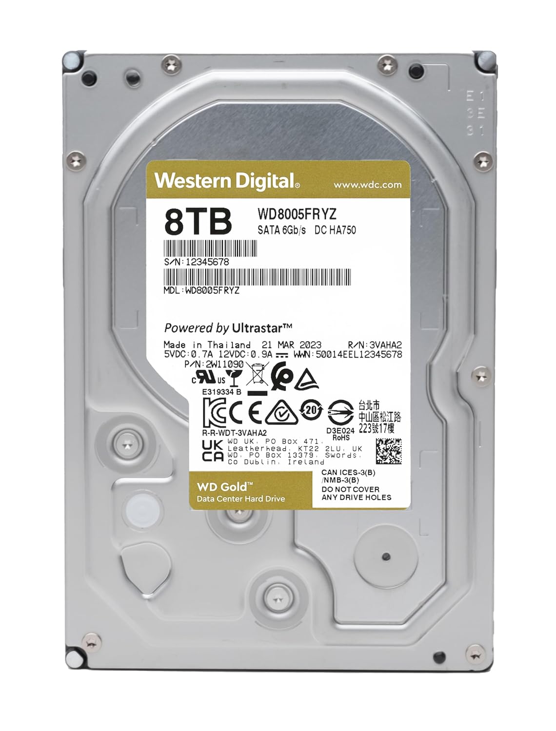 WD Gold 8 TB l WD8005FRYZ 8TB 7200 RPM SATA 6 Gb/s enterprise HDD with 256 MB cache, optimized for reliable, high-performance data center and server storage applications.